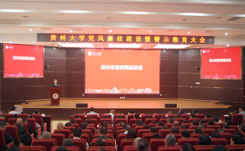 6月3日,贵州大学党风廉政建设暨警示教育大会以“以案为鉴、正风反腐”为主题,校党委副书记、校长宋宝安院士强调,学校各级党组织和党员干部要以深入贯彻中央八项规定精神学习教育为契机,切实提高政治站位,不断增强全面从严治党的政治自觉,要压实责任链条,坚决扛起管党治党政治责任,为学校高质量发展作出新的贡献。