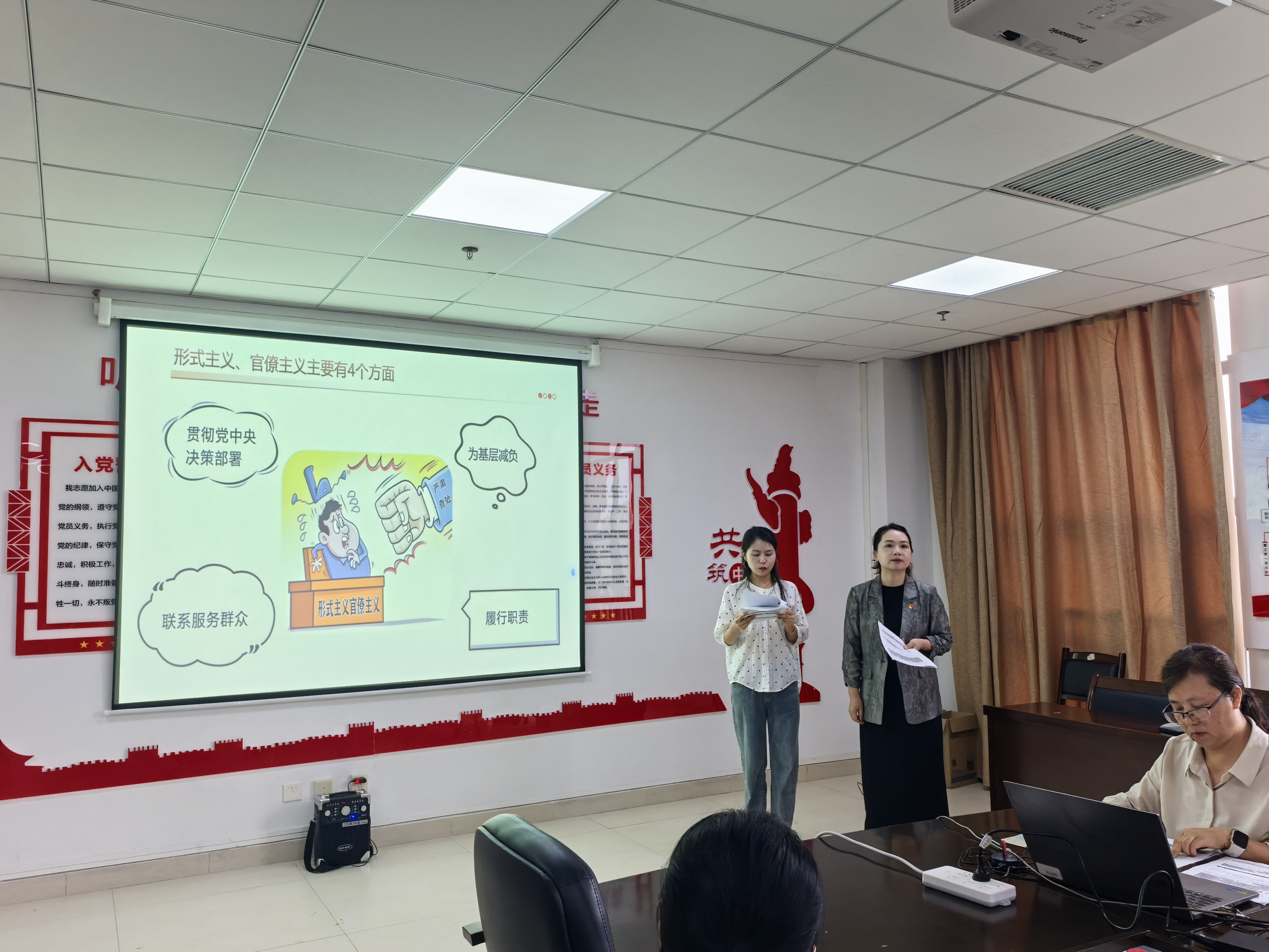 随后,在“青年讲理论”环节,张瑞良同志以《深化作风建设 擦亮“金色名片”》为题,与全体党员分享深化作风建设的思路和方法;杨晓梅和刘顺佳同志以理论宣传二人讲的形式,结合典型案例一问一答,带领全体党员共同学习违规吃喝的形式类型、判断标准、注意事项等。在案例学习环节,播放审计处党支部自主拍摄的廉洁视频《廉洁的模样》,通过“身边事”引发全体党员的共鸣,加深对“廉洁”的理解。在交流研讨环节,全体党员就如何贯彻落实中央八项规定精神、改进作风、推动学校高质量发展开展深入讨论。