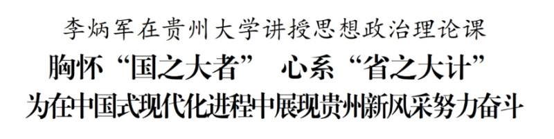 (转载自贵大新闻网)12月17日,省委副书记、省长李炳军到贵州大学讲授思想政治理论课,围绕学习贯彻党的二十届四中全会精神和习近平总书记在贵州考察时的重要讲话精神,全面落实省委十三届八次全会部署,与广大师生交流,希望大家胸怀“国之大者”,心系“省之大计”,为在中国式现代化进程中展现贵州新风采努力奋斗。